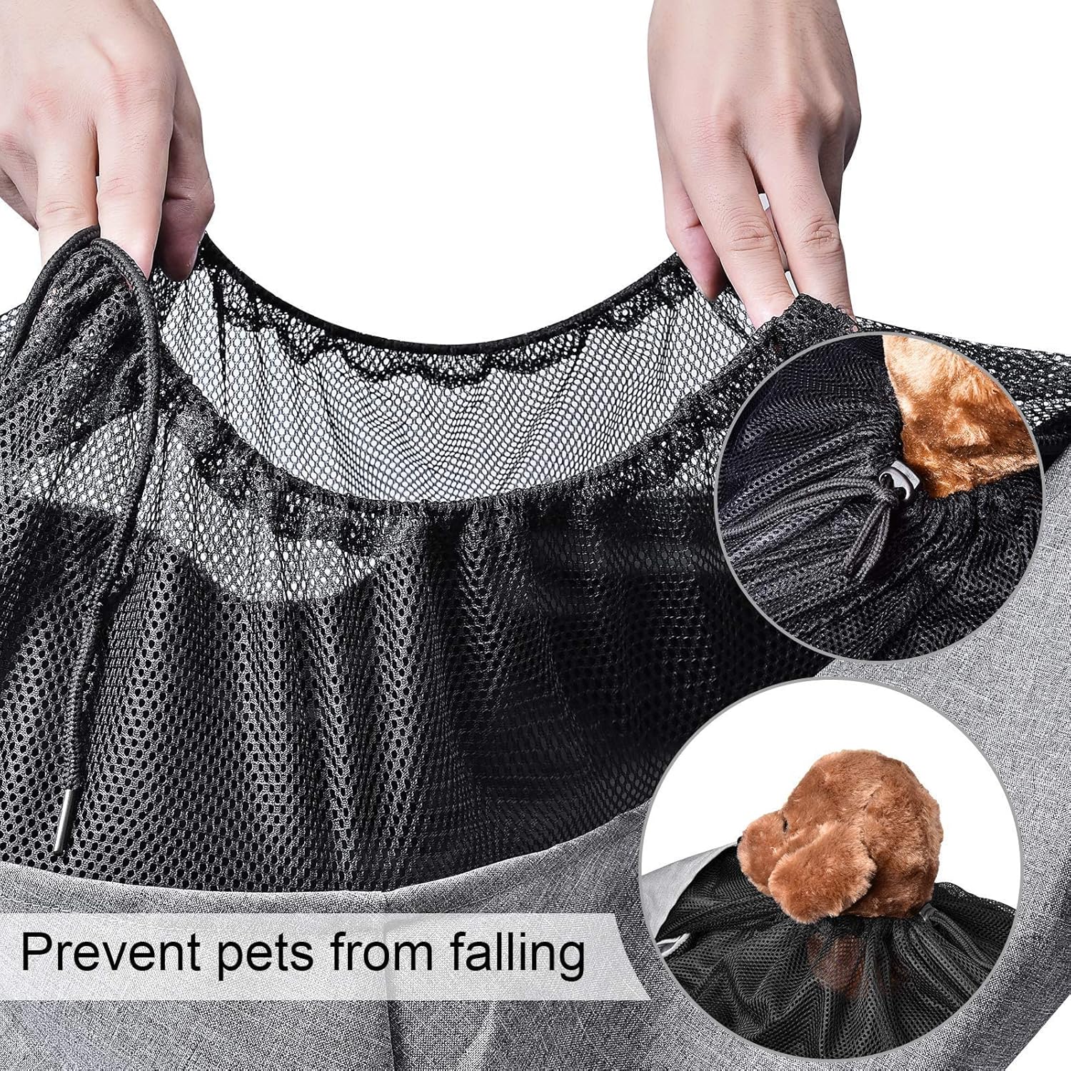 - SAFE: If your pet gets bored and decides to jump out of it, the collar clip and air mesh could prevent the pet from falling. The metal clip is attached to a sturdy and elastic string, make sure clip it to the collar or harness before moving. Black air mesh is breathable and soft, your pets would not hate it.